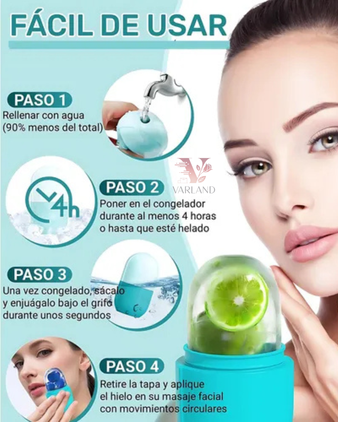 Solo llena el molde con agua (o mezclas naturales: té verde, pepino, aloe, café, etc.), congélalo y disfruta de un tratamiento profesional sin gastar de más.